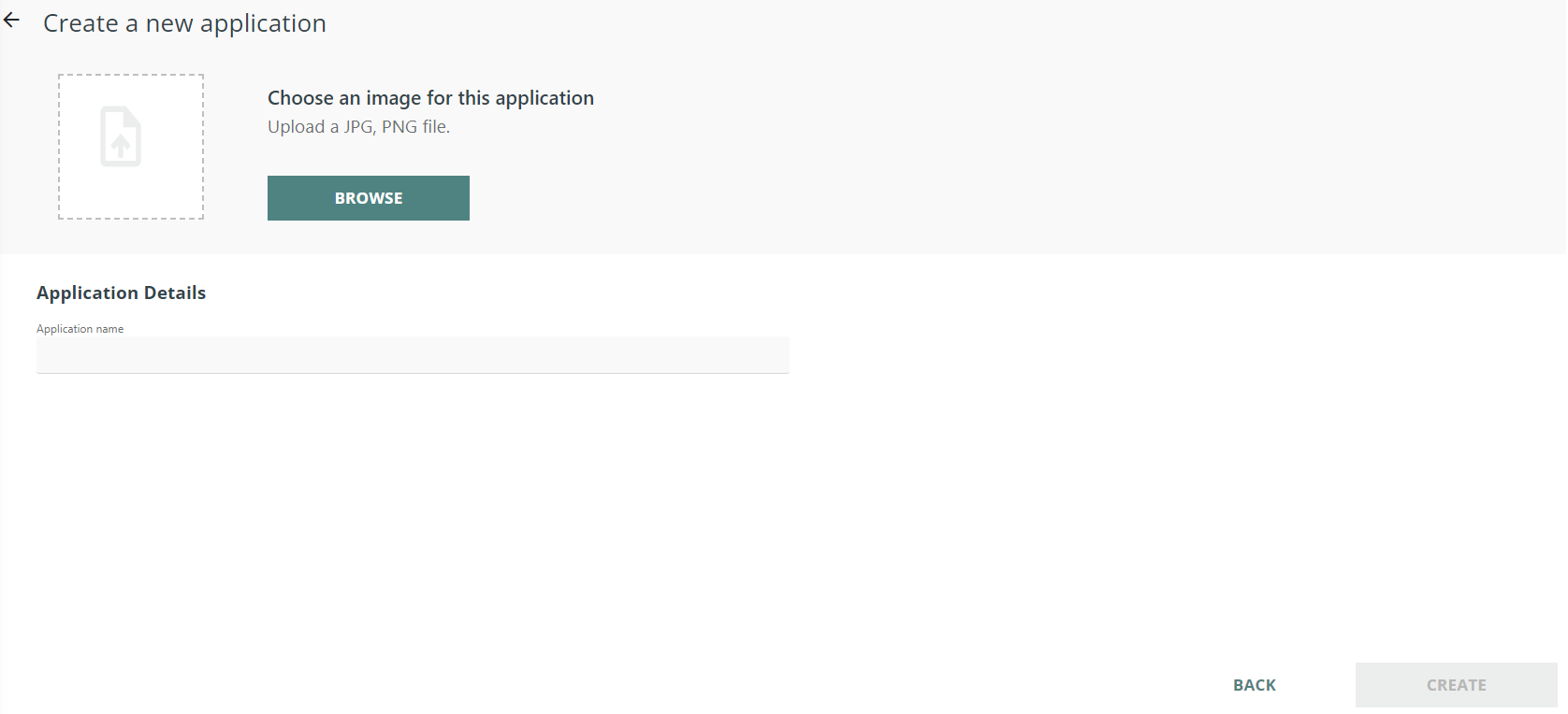 Create a new application by specifying an image and a name.