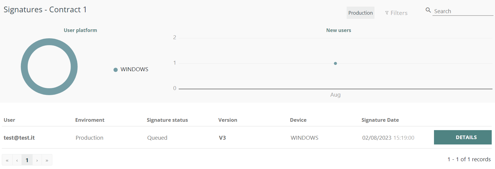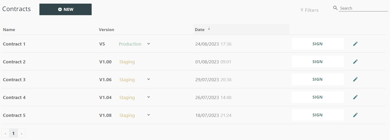 - Manage Signature: Easily view signed contracts by clicking on the "SIGN" button for each row. If allowed, edit contracts with a pencil icon or view details in read-only mode with an eye icon.