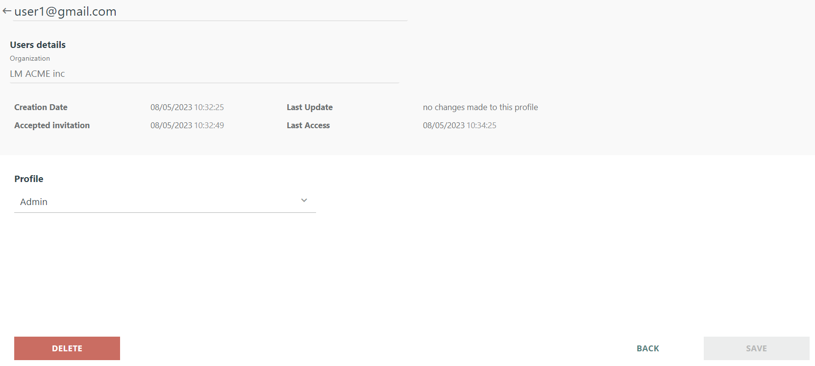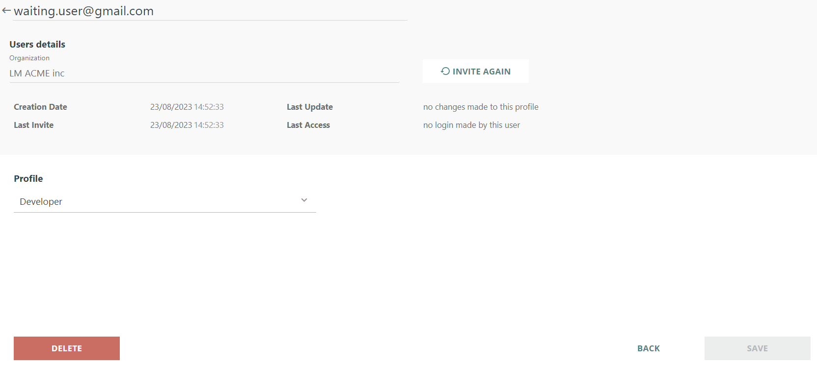Access the details page to manage roles or delete profiles. For waiting users, re-invite or edit/delete as needed.