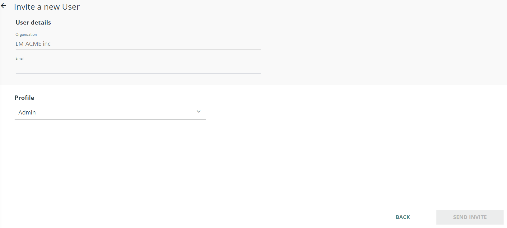 Initiate the user invitation process by filling out the details on the "Invite New User" page.