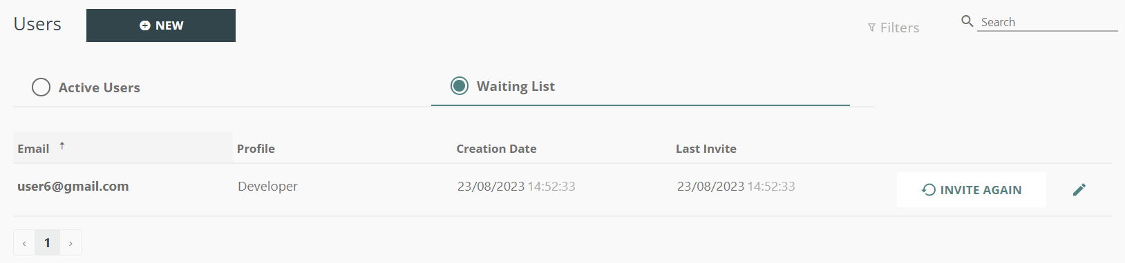 - Re-Inviting Waiting Users: For waiting users, re-invite or edit/delete with the "INVITE AGAIN" button or pencil icon.