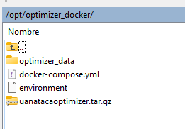 Extract all content from the optimizer_docker.zip archive into a local folder. Move the uanataca_optimizer folder (or the extracted content) to /opt on the server.