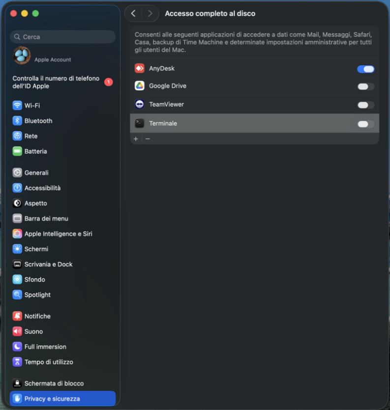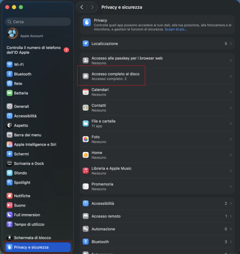 In Settings, go to Privacy & Security and select Full Disk Access.