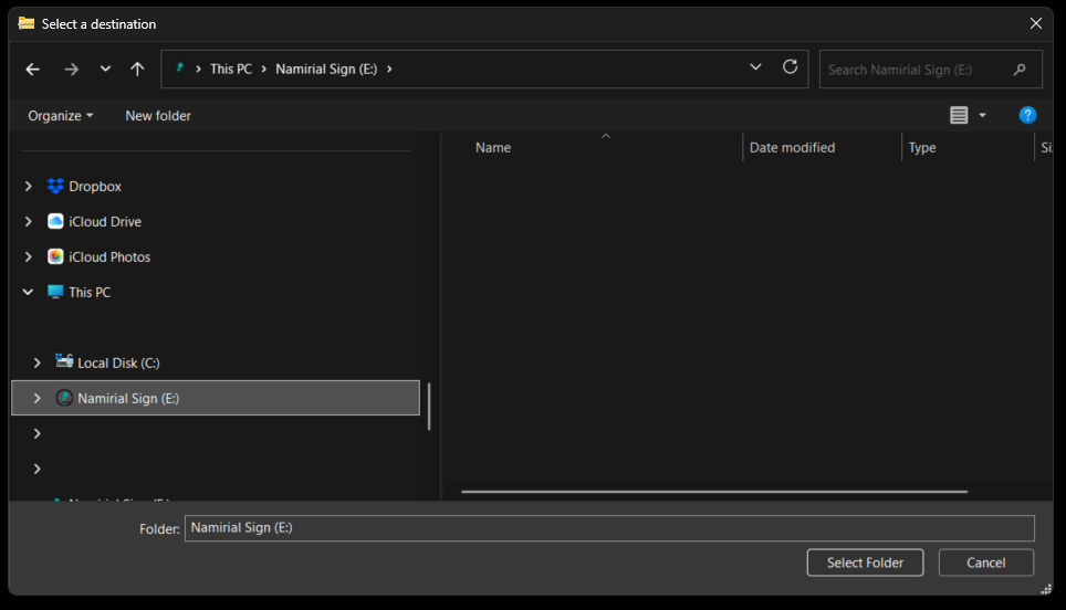 - Select the drive associated with the token as the destination.