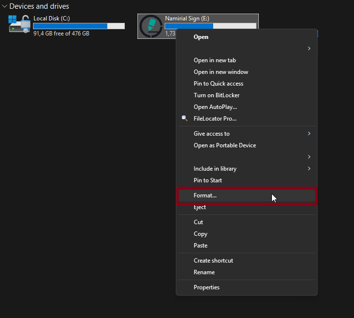 - Go to This PC, right-click on the token.
