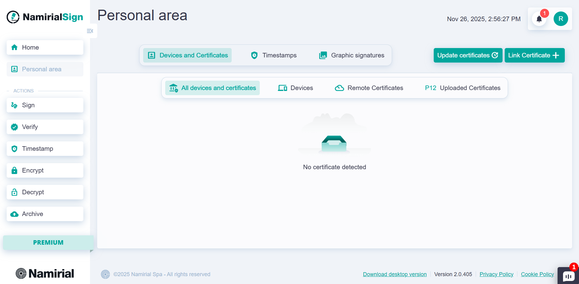 All features of Namirial Sign will be unlocked for users with a PREMIUM plan.