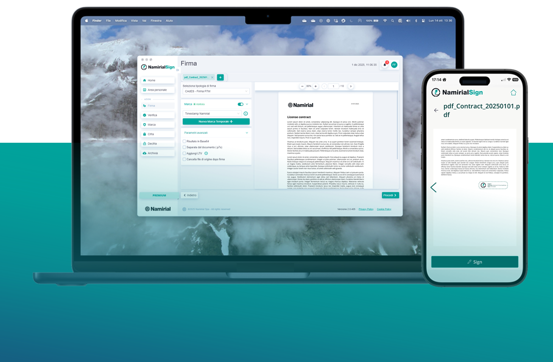 Namirial Sign is the ideal solution for applying legally valid electronic signatures to all types of documents. The application is available both on the web and as a desktop app for various operating systems—Windows, MacOS, and Linux—as well as on mobile devices for both Android and iOS, allowing use on any device.